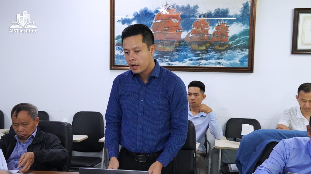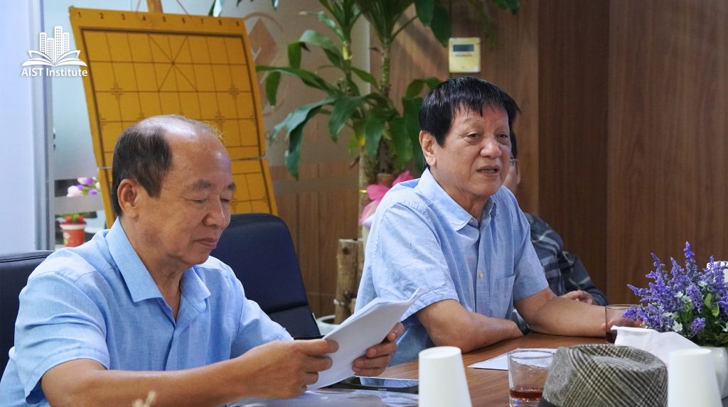 Ông Hán Minh Cường chia sẻ thông tin về dự thảo Quy chế hoạt động của Hội đồng khoa học Viện AIST, nêu rõ định hướng phát triển đội ngũ chuyên gia, tăng cường kết nối với các đối tác chiến lược trong và ngoài nước. Ông cũng khẳng định tầm quan trọng của việc đổi mới trong quản trị khoa học và nâng cao chất lượng nhân lực kỹ thuật, đặc biệt là trong lĩnh vực xây dựng và công nghệ cao.
